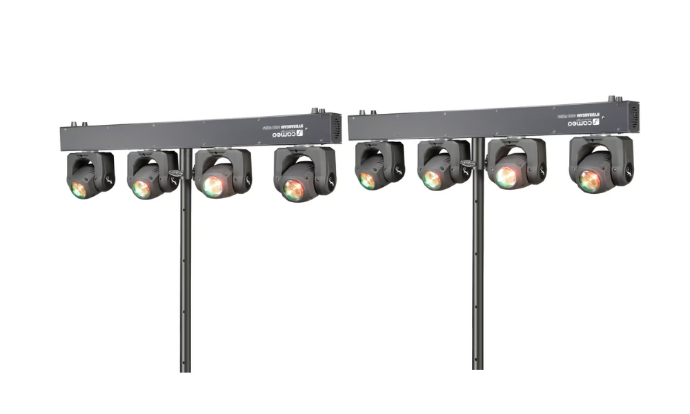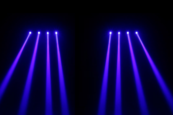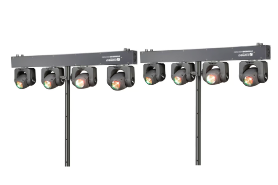 - Vier individueel stuurbare moving heads op een 100 cm stang – voor extra brede dekking en spectaculaire lichteffecten.