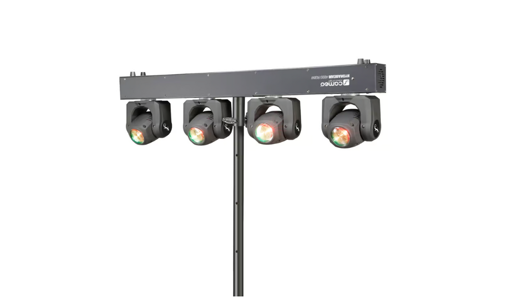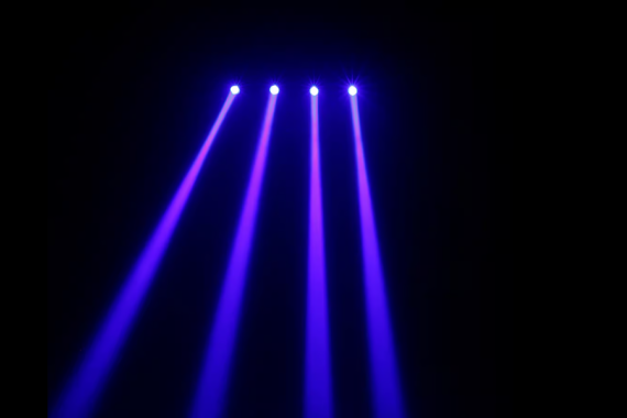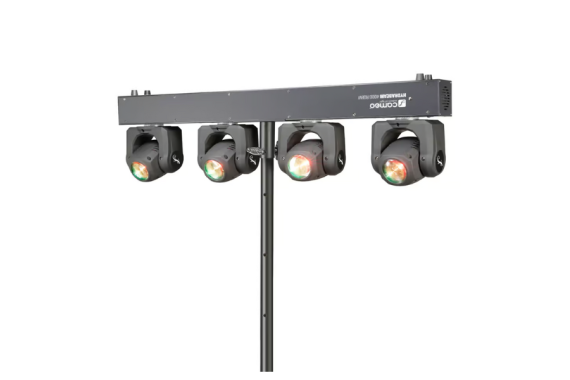 - Vier individueel stuurbare moving heads op een 100 cm stang – voor extra brede dekking en spectaculaire lichteffecten.